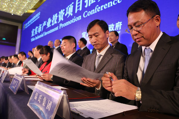 11月2日下午,宜宾市产业投资项目推介会暨签约仪式在成都举行,我县签约16个项目,协议引资额达66亿元。县委书记叶盛出席会议,县委副书记、代理县长徐创军代表县政府现场与投资商签订投资协议。