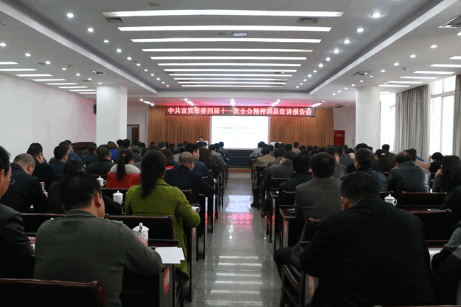 3月16日,市委四届十一次全会精神宣讲团成员、宜宾市农业局党组书记、局长林世全来我县宣讲市委四届十一次全会精神。县政协主席孙怀勇聆听宣讲报告。