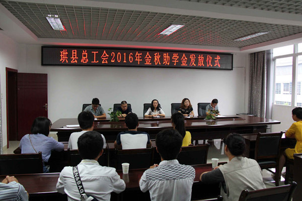 8月30日上午,我县2016年“金秋助学”活动助学金发放仪式在县总工会四楼会议室举行,22名考上大学的受助学生及部分家长代表参加发放仪式座谈会。