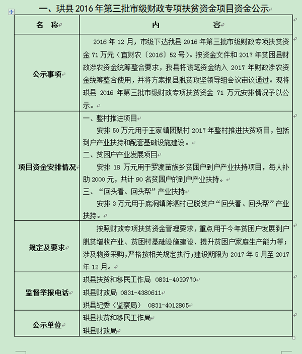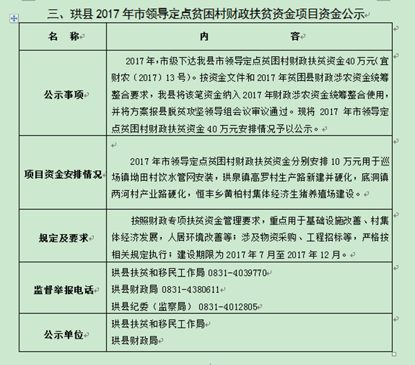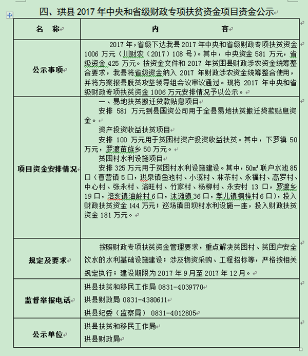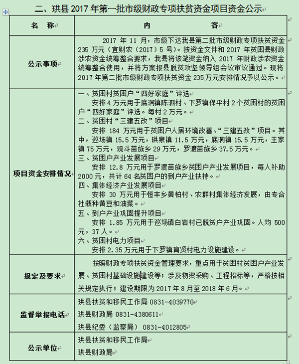 2017年财政专项扶贫资金项目资金公示(二)