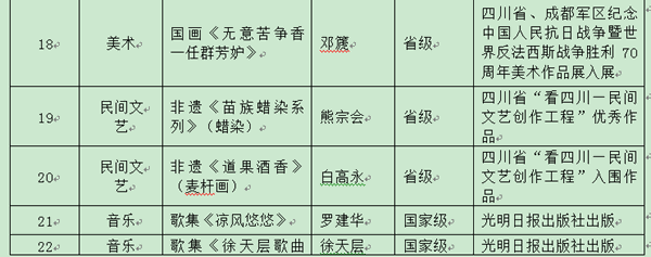 附件:第三届珙县珙桐花文艺奖获奖作品一览表